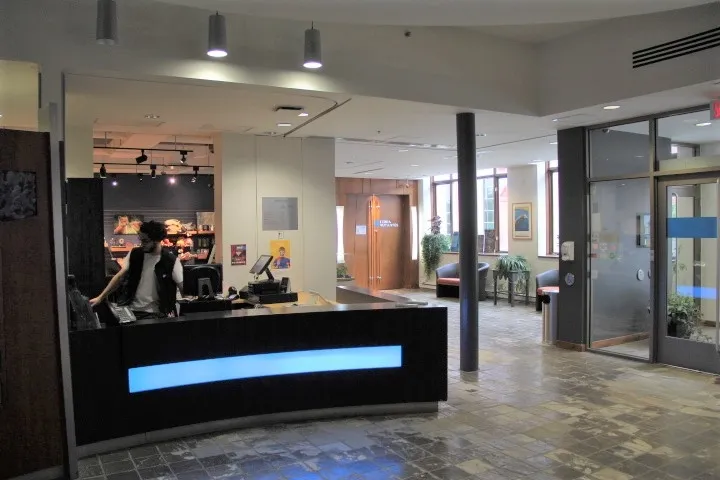 - Tables and chairs are available for users to eat their lunch.