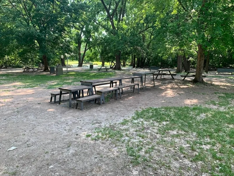 - The accessible picnic tables are off the trail, and to get to them you have to walk over the grass and through the roots.