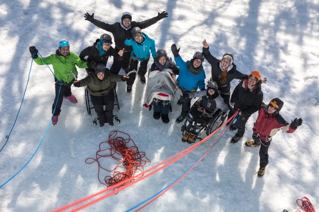 Accès Grimpe : this is an organization for adaptive climbing enthusiasts that holds winter outings for people with functional limitations. It all happens on ice walls, a truly impressive experience.