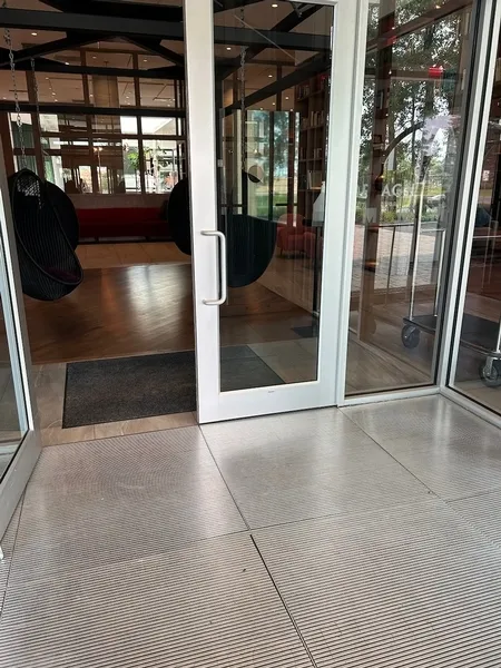 Accès via l'intérieur du restaurant Sens: porte double coulissante
