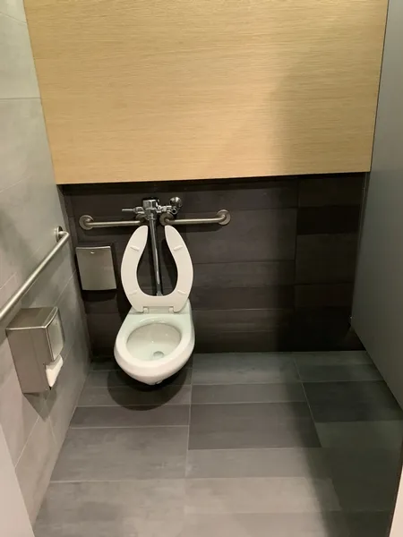 - Cabinet de toilette accessible : zone de transfert sur le côté de la toilette restreinte : 80 cm