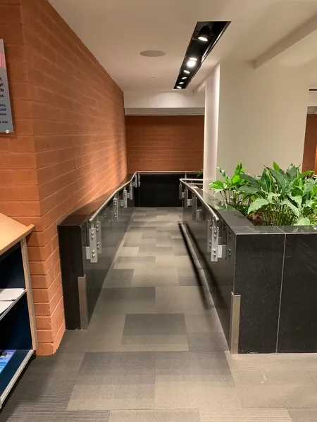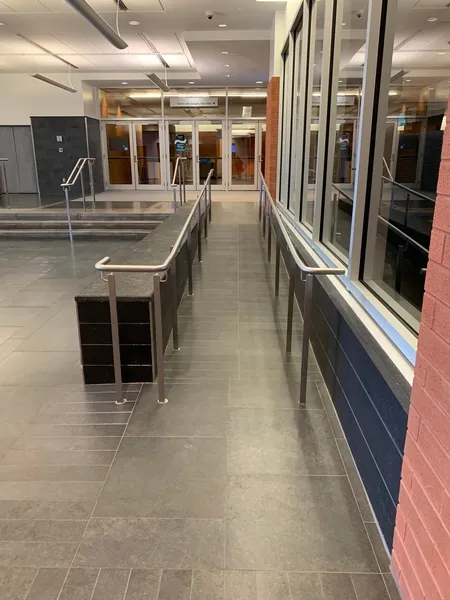 Entrée accessible aux personnes handicapées située à l'intérieur de l'établissement