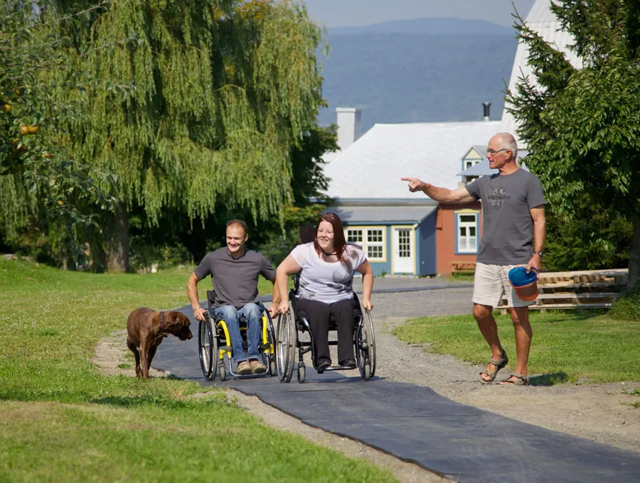 Certain·e·s visiteur·euse·s pourraient avoir besoin d’accompagnement, car certains chemins sont en pente ou sur terrain naturel. Le personnel est attentif et disponible pour aider au besoin.